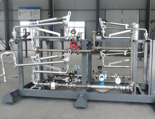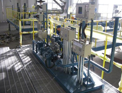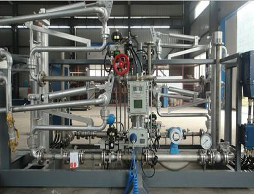 油品定量裝車(chē)橇裝組是指將每一個(gè)裝車(chē)鶴位內(nèi)的儀表和設(shè)備集成在一個(gè)專(zhuān)用的框架結(jié)構(gòu)內(nèi),儀表和設(shè)備包括裝車(chē)鶴管、流量計(jì)、防溢油靜電報(bào)警控制器、壓力變送器、裝車(chē)流量控制閥、緊急切斷閥,裝車(chē)泵、批量控制器等, 只預(yù)留工藝連接口和控制電源和通訊接口,這個(gè)整體集成部分稱為裝車(chē)橇。與傳統(tǒng)的裝車(chē)控制系統(tǒng)就地組裝比較,裝車(chē)橇可以節(jié)省現(xiàn)場(chǎng)設(shè)計(jì)和現(xiàn)場(chǎng)施工量,縮短項(xiàng)目工期,提高裝車(chē)控制系統(tǒng)的質(zhì)量。